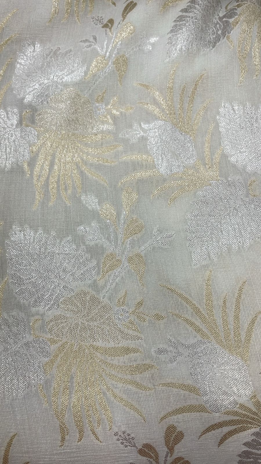 | Description | Munga Silk in rose,silver zari with floral pattern |